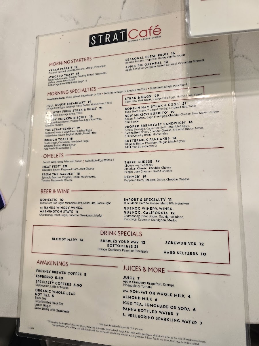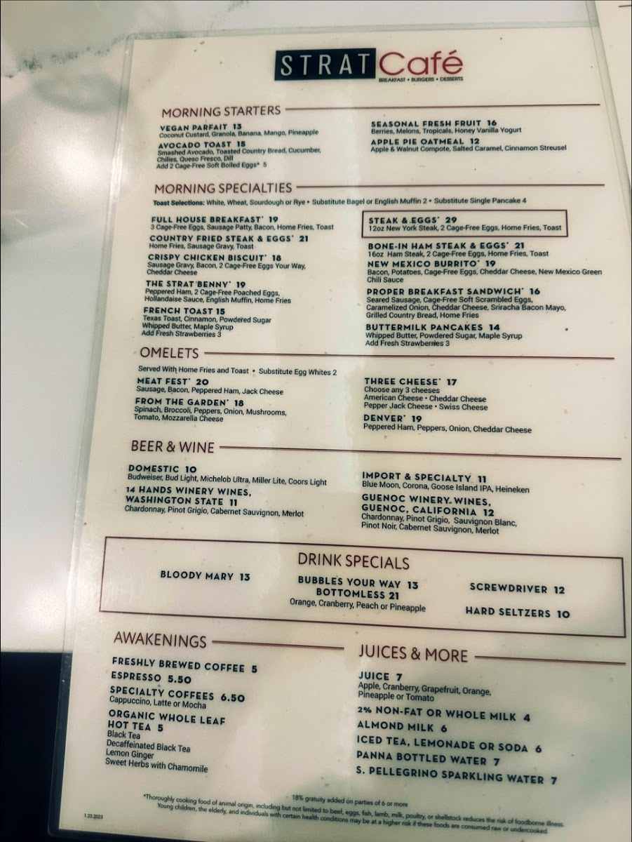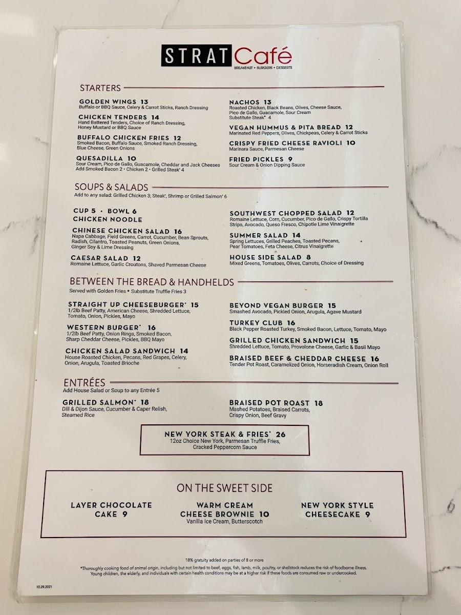 STRAT Café Menu