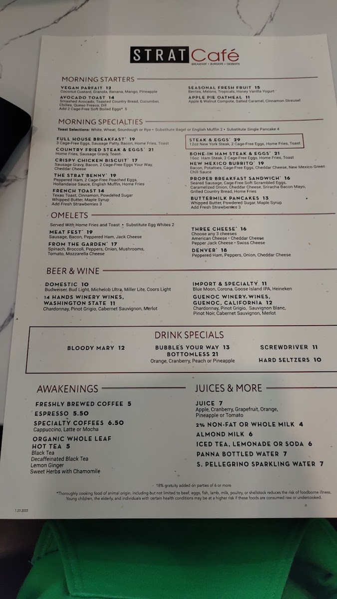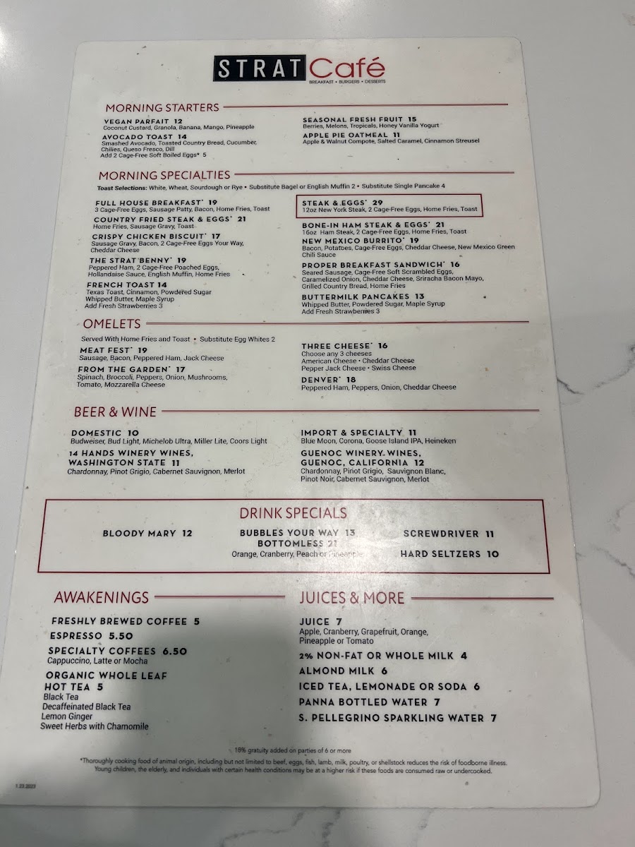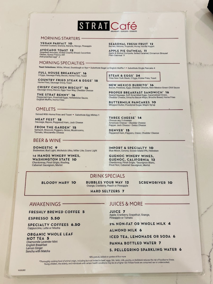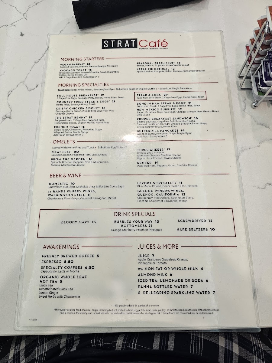 STRAT Café Menu